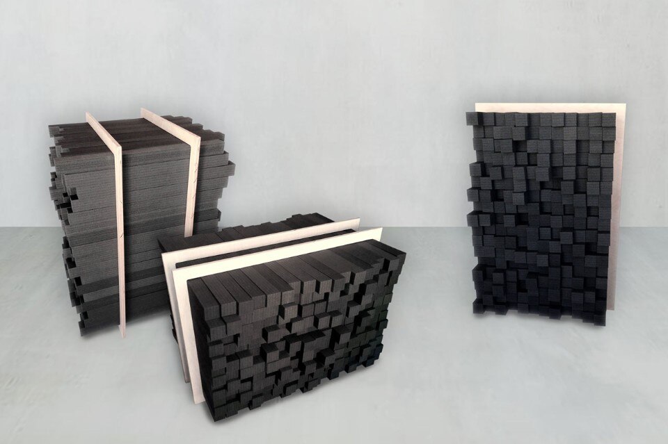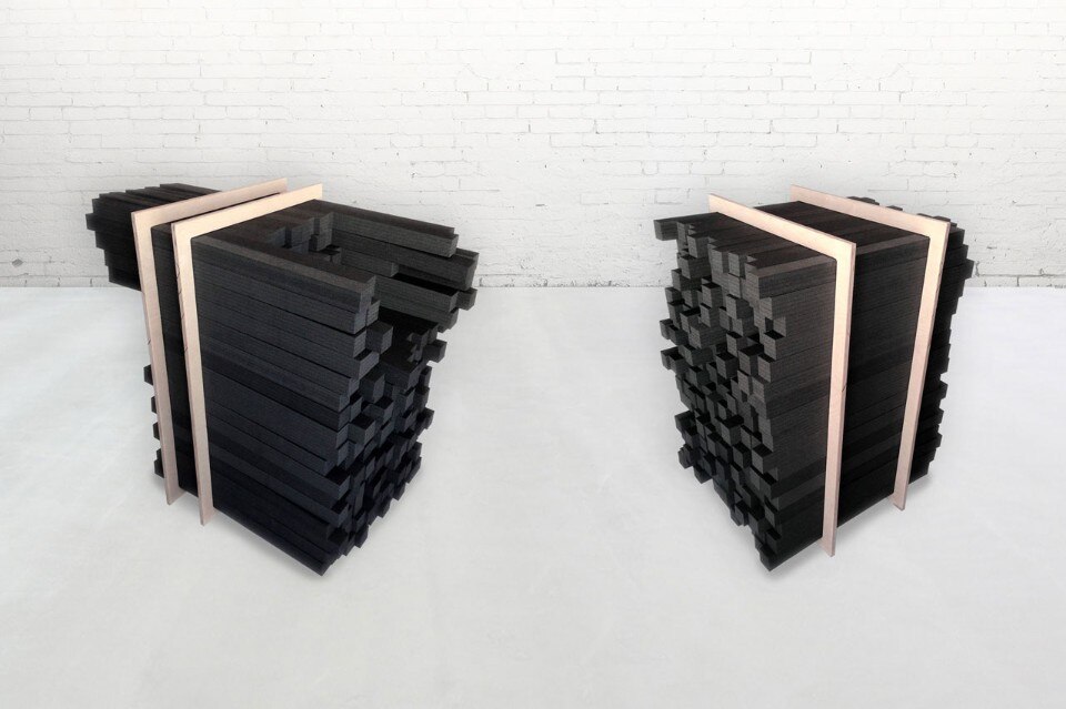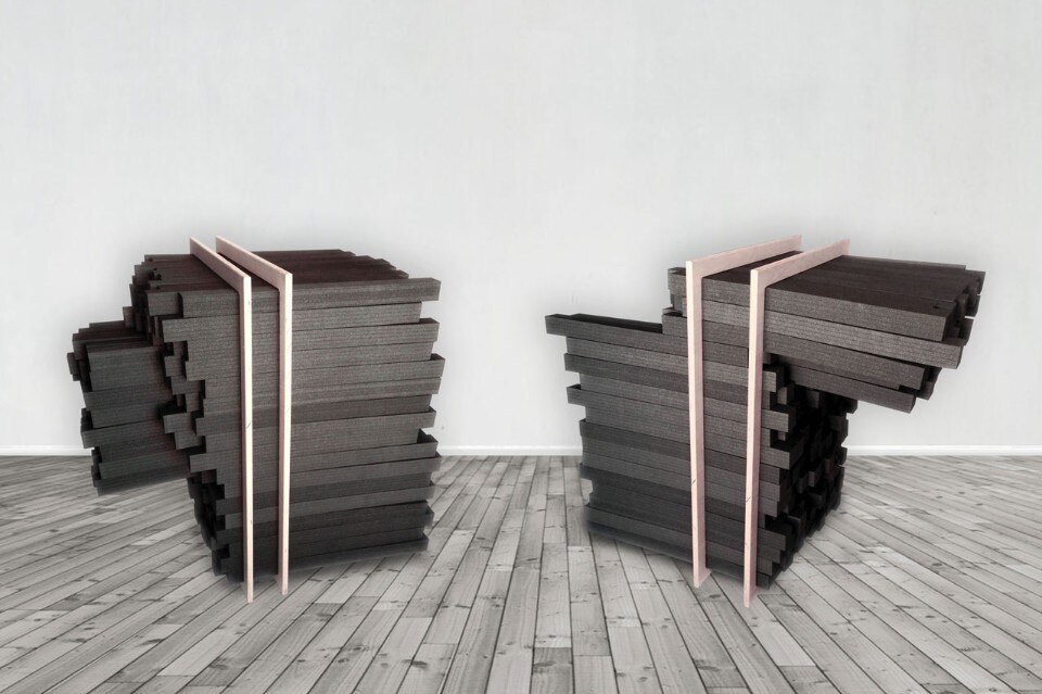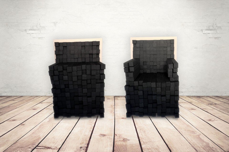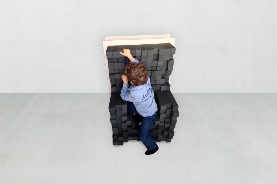 Sink In è una seduta regolabile composta da due telai di legno che contengono 204 elementi di spugna che possono essere spostati avanti e indietro, creando così diversi modelli di seduta di varie dimensioni e altezze.