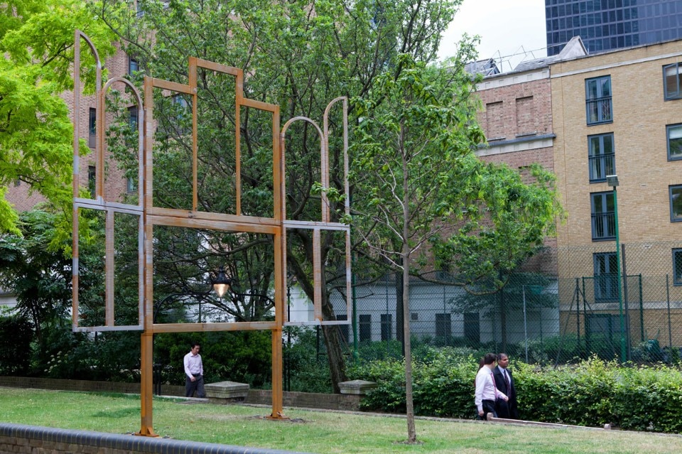 Rays (London) di Xavier Veilhan è uno splendido pezzo site-specific, alto 12 metri, che incornicia la vista tra i Willis Building. Un altro lavoro nuovo è quello di Shan Hur, Broken Pillar #12. Il pilastro contiene un vaso che l’artista ha trovato all’Half Moon Castle di Kyung-ju, Corea, che gli ricorda la posizione del pilastro, sul sagrato di St Helens.