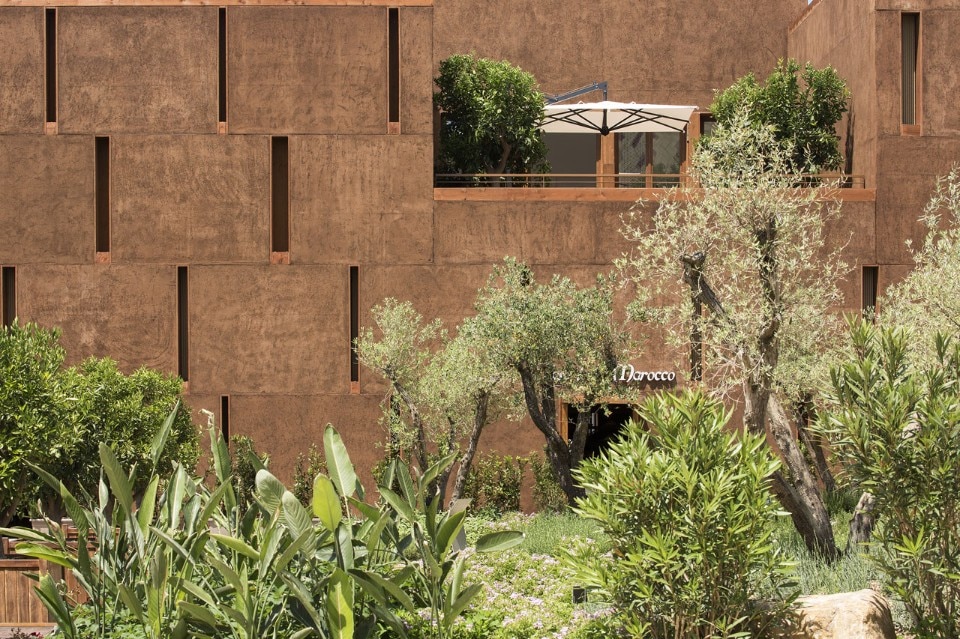 Facendo riferimento alla materialità e alla sensualità delle costruzioni rurali in Marocco, il padiglione si presenta come una reinterpretazione contemporanea delle strutture tradizionali di terra cruda.