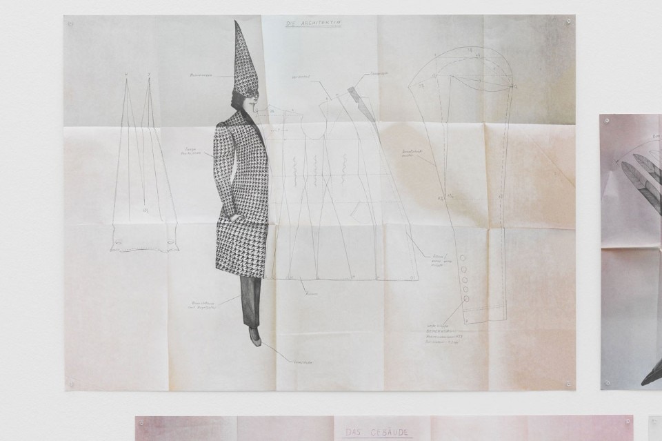 Aleksandra Chaushova, Annulment of the End of Things Costume I-VI (A Surgeon, The Body, The Mortician, The Lover, The Architect, The Official Speaker), detail, 2015, Annulment of the End of Things Theater set I-VII (Sensors for the temperature and humidity, Hermetic box, Hermetic box handle, Plan of movement, Northern Façade, Cut through the Façade, Lifting Mechanism), 2015, Digitalprints. Photo Neues Museum (Annette Kradisch)