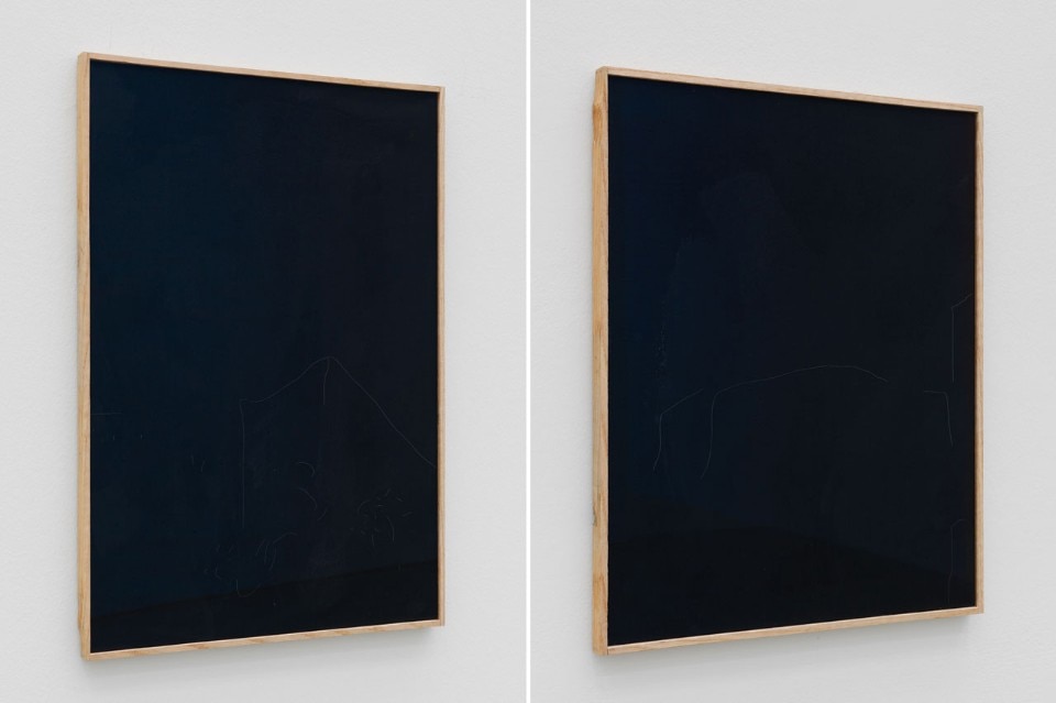 Julia Haller, Knochenleim, Kreide, Eisenoxidpigment, Leinwand, Glasgravur, gerahmt, 2015. Photo Neues Museum (Annette Kradisch)