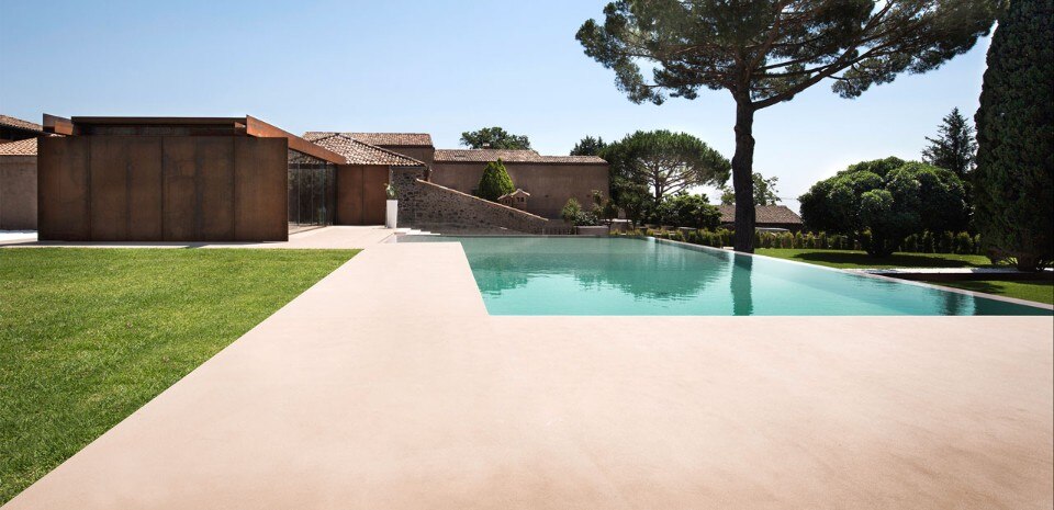 Nasce un viale principale di ingresso (riprende il sedime di un vecchio percorso) rivestito in pietra lavorata a mano che conduce, passando fra il vuoto di due cipressi secolari, ai vari terrazzamenti verdi confinati da sottili lame in acciaio corten. Alla fine del viale, una scala conduce al nuovo spazio veranda.