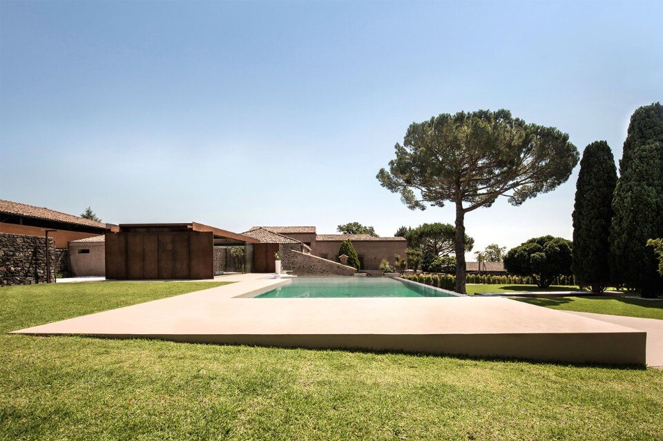 Innovare il concetto di giardino siciliano, semplificando forme ed essenze, è la linea conduttrice del progetto degli esterni. Il vecchio giardino appariva saturo di essenze spontanee e poco curato, era caratterizzato da un unico spazio in pendenza costante e quindi poco vivibile. Si è reso necessario dare un nuovo ordine agli elementi importanti: le essenze, i viali di collegamento, i terrazzamenti orizzontali e le zone ombreggiate.
