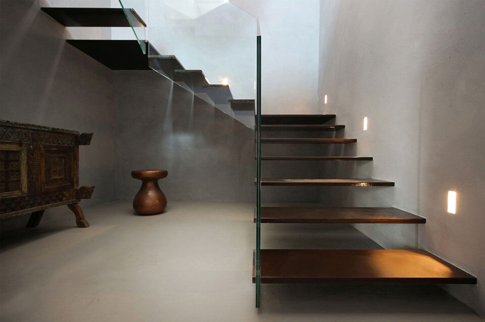 Tutte le pareti interne sono finite a calce naturale stesa come da tradizione in maniera irregolare, per sottolineare la bellezza e l’autenticità del materiale è stato scelto di non dipingere le pareti ma di lasciarle del colore della calce. Gli intonaci esterni sono in cocciopesto naturale per mantenere l’aspetto dato dal tempo.