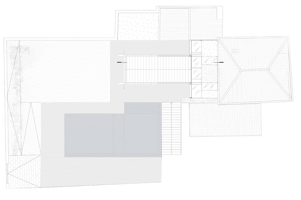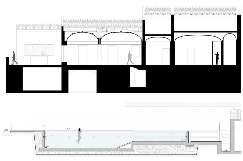 Il progetto prevede anche la ristrutturazione di una villa di 600 mq che si sviluppa su tre livelli: un piano seminterrato costituito da un portico di ingresso e da locali adiacenti, un piano terra destinato all’abitazione e un piano primo caratterizzato da un grande open space. Particolare attenzione è stata riservata al progetto di divisione degli spazi interni, la villa, poiché costruita con sistema di muratura portante, aveva delle grosse murature interne che ne scandivano la divisione in camere. Camere piccole e separate da strette porte, in contrasto con spazi ampi e unici.