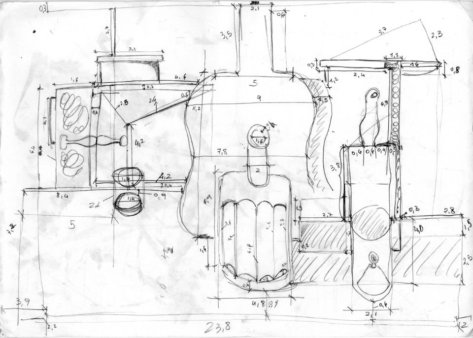 1. La Maschera di Le Corbusier, strumento per la visione monoculare che ho disegnato con Veronica Citi per il progetto Gran Touristas al Padiglione Italia della Biennale di Venezia 2012, su gentile invito di Susanna Legrenzi e Stefano Mirti; essa è peraltro parte di un ampio lavoro collettivo denominato Gran Box.