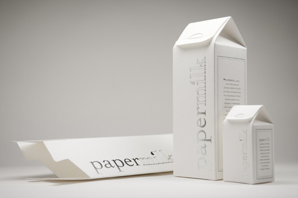 Paper Milk. Design: Susanna Bonati e Gruppo Cordenons. Azienda: Gruppo Cordenons. Materiali: carta ottenuta con fibre di latte (da scarti di lavorazione alimentari)