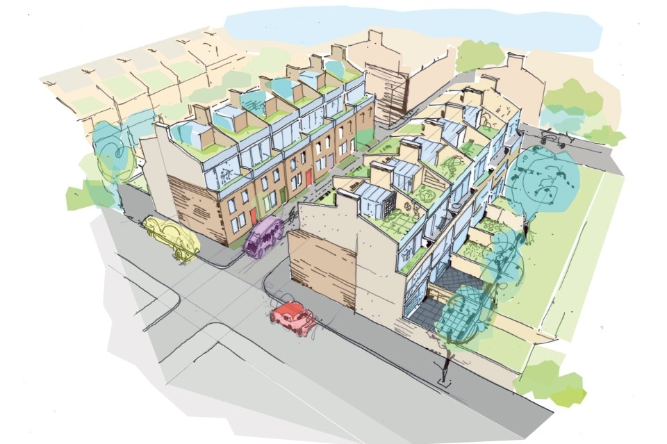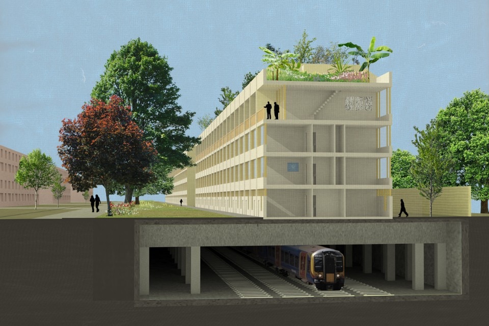 Altri hanno esplorato i terreni inutilizzati, con idee che vanno dalle aree dismesse ai tetti. La ricerca di WSP | Parsons Brinckerhoff in materia di alloggi sui tetti degli edifici pubblici esistenti, quali ospedali, scuole e biblioteche sostiene che in questo modo potrebbero essere ottenute 630.000 nuove case – superando di gran lunga l’attuale necessità di 440.000 alloggi. Bell Phillips Architects propone di aggiungere residenze modulari ai tetti piani di complessi residenziali del dopoguerra, mentre la proposta di Akira Yamanaka Architects mira a creare micro-abitazioni negli spazi tra le case a schiera e bifamiliari.