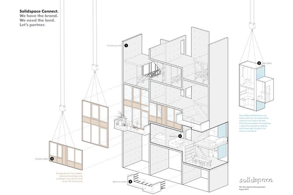 I progetti presentati hanno dimostrato che i progettisti sono interessati a sviluppare nuovi metodi di costruzione e prefabbricazione. Un appartamento flessibile progettato da Levitt Bernstein, che permetterebbe all’occupante di trasformare il piano terra da una a quattro camere da letto, mostra come la costruzione potrebbe offrire capacità di adattamento. l’Y: Cube di Rogers Stirk Harbour & Partners mostra come la prefabbricazione possa creare appartamenti ben progettati in maniera facile ed economica.