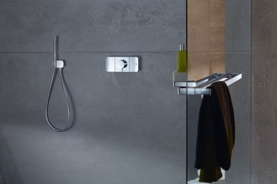 Questa unificazione di attivazione di uscita dell’acqua, regolazione del volume e controllo della temperatura dà una forma elegante a una funzione strutturata. Superfici piane, bordi arrotondati e un’interfaccia meccanica integrata, costituiscono un termostato da incasso chiaramente strutturato che semplifica lo spazio.