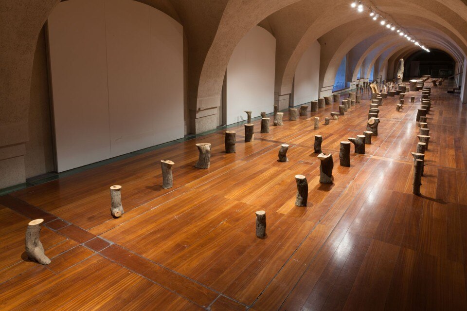 L’idea di cosa fare con il frassino di mio nonno si è evoluta rapidamente. Volevo che l’albero rimanesse parte integrante del legno. Insieme al mio amico John Turnbull ho sezionato l’albero dall’alto verso il basso a intervalli regolari nel rispetto delle divisioni naturali all’interno della struttura, come nodi, rami e biforcazioni. Volevo elaborare ogni pezzo il meno possibile, ad eccezione delle facce superiori e inferiori per determinarne la funzione. Ho tagliato le sezioni a un’altezza che permettesse di usarli come sgabelli, tavoli e sedie. Ogni tronco diventa una superficie di ciò che mio nonno avrebbe chiamato “uso generico”. Diviso in 130 pezzi disposti in ordine di diametro, con i 187 anelli di accrescimento annuali ben visibili, il frassino continua a esistere come un frassino, ma con una nuova vita, una nuova funzione e l’inizio di una nuova storia”.