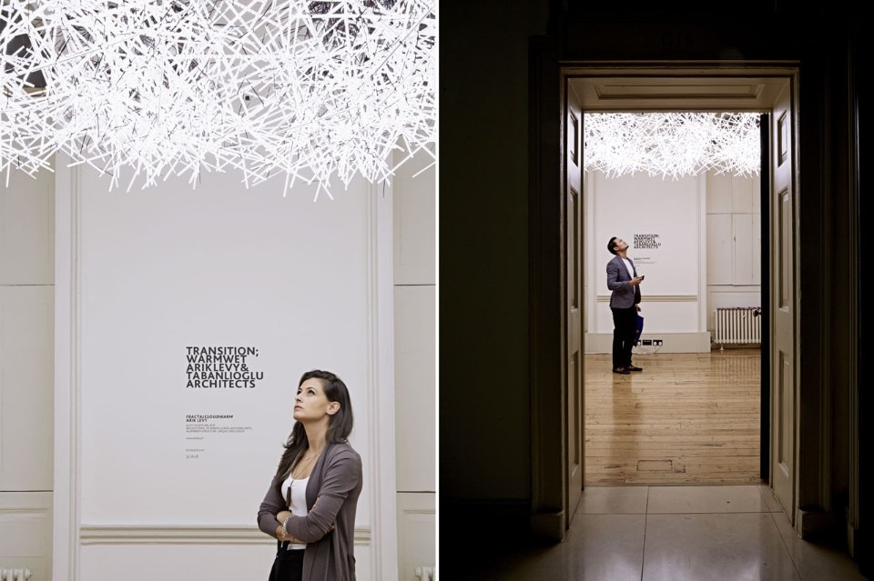 FractalCloudWarm è un’ampliamento dei progetti Fractak di Arik Levy, una serie di sculture di luce formate da micro strisce di LED, senza inizio e senza fine. Questa scultura site-specific crea la “warm light room”. La luce molto intensa si trasforma in un materiale tangibile caldo in cui si può camminare, come se stessimo passeggiando nel sole.