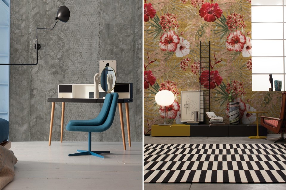 Decori che si spogliano e si sovrappongono e che dalla carta da parati scivolano su legno, cemento e manufatti estrusi: sono le novità di Inkiostro Bianco presentate a Cersaie.