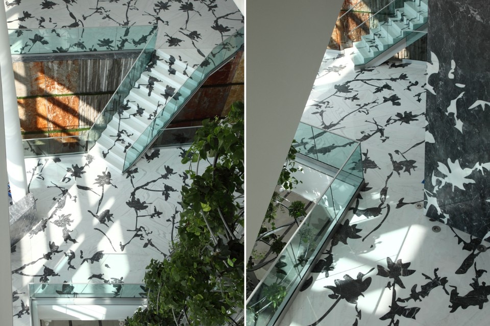 In qualità di spazio introduttivo, è contraddistinta da una grande parete marmorea inclinata che s’incide sul terreno come uno scavo, da cui affiorano superfici litiche, scabre, materiche, inumidite da rivoli d’acqua, che rievocano la condizione della cava. L’apertura sul pavimento ospita, una struttura-giardino ipogeo – denominata Albero Climb e progettata dal designer Luigi Siard – alta 18 metri e costituita da 380 piante, che emerge dal suolo dell’interrato attraversando scenograficamente lo spazio a tutta altezza.