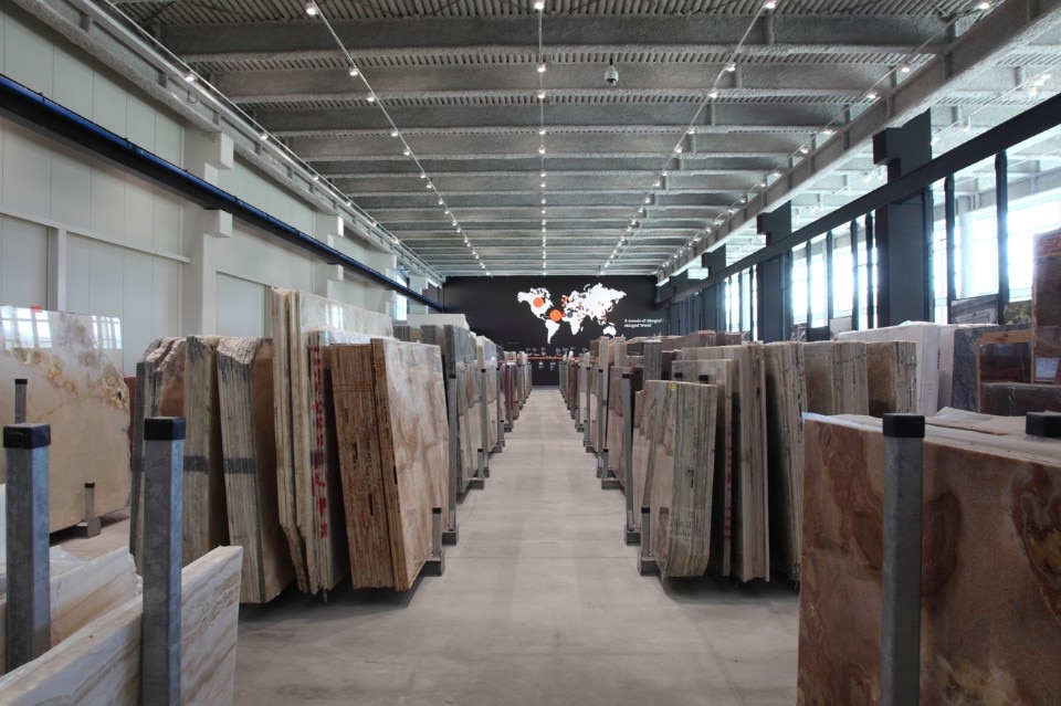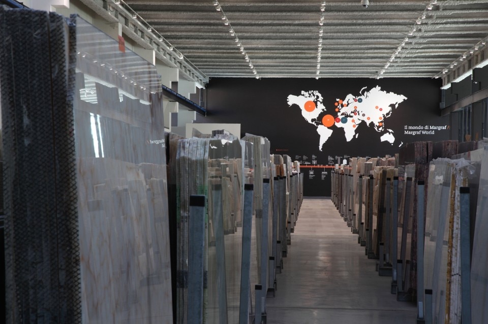 In fondo allo showroom, è stato progettato un edificio nell’edificio, un piccolo scrigno in mezzo al marmo, che accoglie l’archivio Margraf con i disegni originali delle grandi firme del passato e del presente, da De Chirico a Gardella, ai designer e agli architetti contemporanei, e la sala conferenze.
