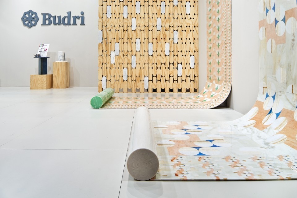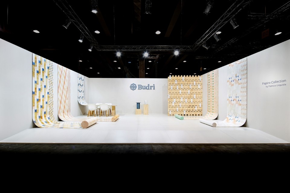 Patricia Urquiola, Papiro Collection, Budri. Vista dell'allestimento presentato a Marmomacc