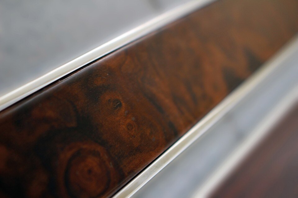 L’ampia palette colori e la disponibilità in grandi formati ne permette un impiego creativo nei vari ambienti. L’ispirazione dei decori arriva dalla tradizione auto Pininfarina. Caratterizzati da linee pulite ed eleganti, i decori sono realizzati con finiture e materiali speciali – vernice carrozzeria, legni pregiati e pelle naturale trattata per consentirne l’uso come elemento di rivestimento.