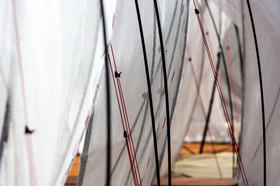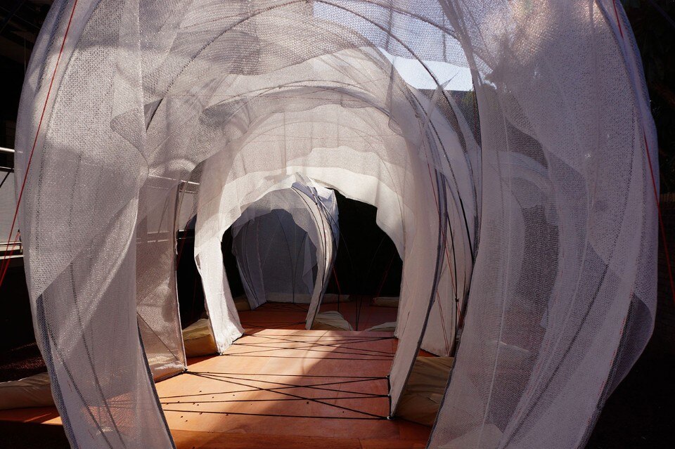Sway chiede movimento: fuori dalla galleria e in una serie di ambienti interni ed esterni fissati nel giardino. È un luogo capace di ospitare diversi eventi, ma anche uno spazio per la solitudine e la contemplazione. La struttura è come un episodio, una fermata nella giornata di un visitatore. L’esperienza non è solo quella dell’arrivo e della permanenza, ma anche quella di un viaggio in corso. L’architettura, quindi, può anche essere lasciata”.