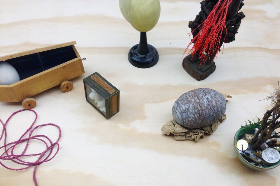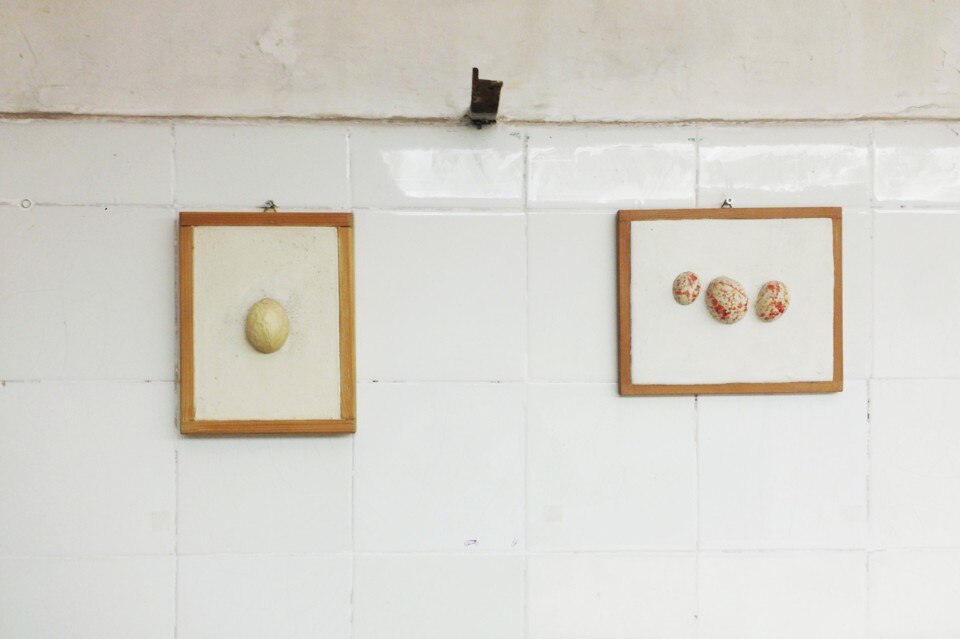 In apertura: Alberto Casiraghi, fondatore di Edizioni Pulcinoelefante. Sopra: “De Ovorum Natura”, la mostra allestita negli spazi di Subalterno1