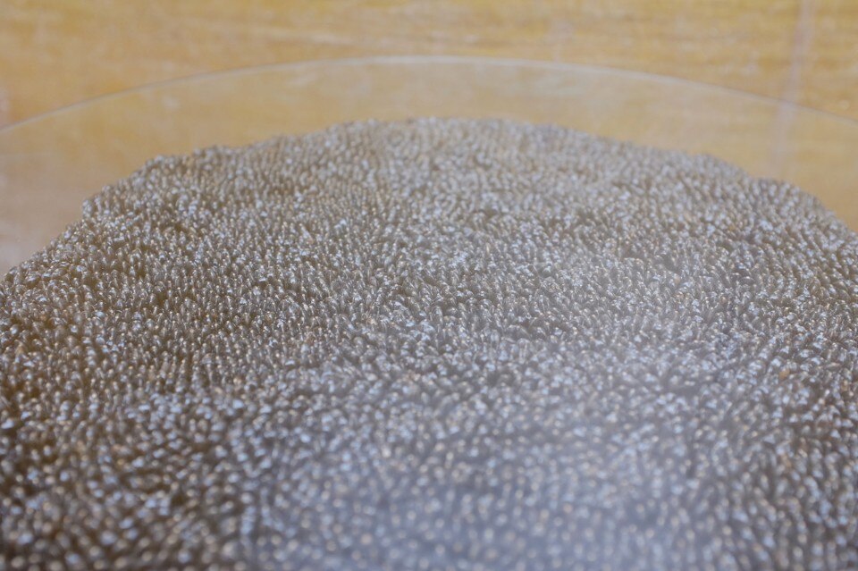 Huissoud ha adattato questa macchina per creare centinaia di bastoni a partire dai semi di girasole, immersi nella cera d’api per diventare un unico oggetto.