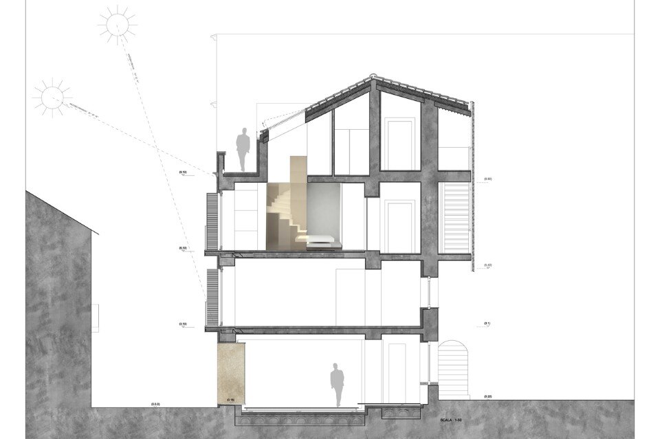 L’intervento prioritario è stato quello di un imponente consolidamento strutturale, dettato dalla volontà di evidenziare la natura storica del fabbricato: un edificio di modeste entità con caratteristiche e dimensioni di una dimora popolare.
