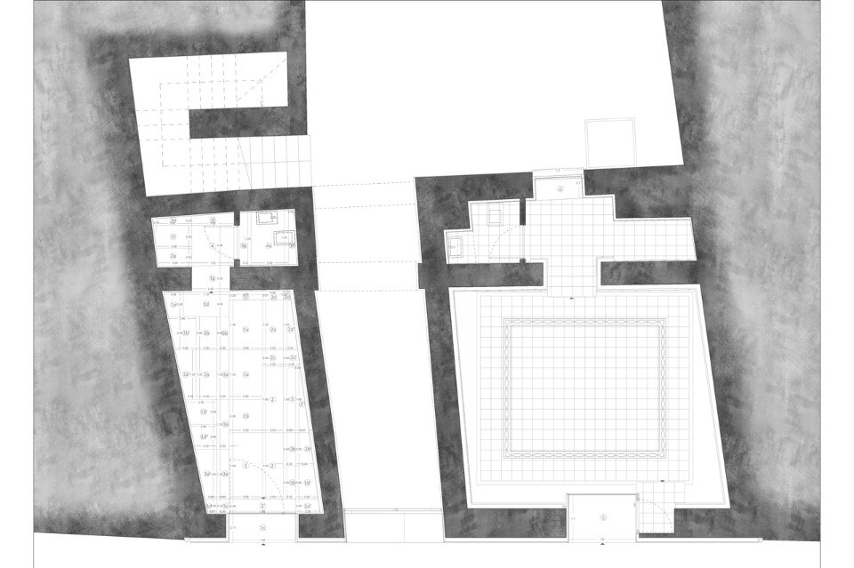L’intera massa del corpo di fabbrica, composta sia da materiale tufaceo che da pietrame derivanti dalle vicine cave, si è dimostrata sin dai primi saggi effettuati ben compatta e dallo spessore notevole, anche in corrispondenza dei piani superiori. La consistenza è tale che lo spazio abitativo sembra derivare da un processo di erosione e di scavo di un “pieno”, piuttosto che dalla delimitazione di un vuoto.