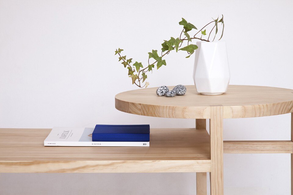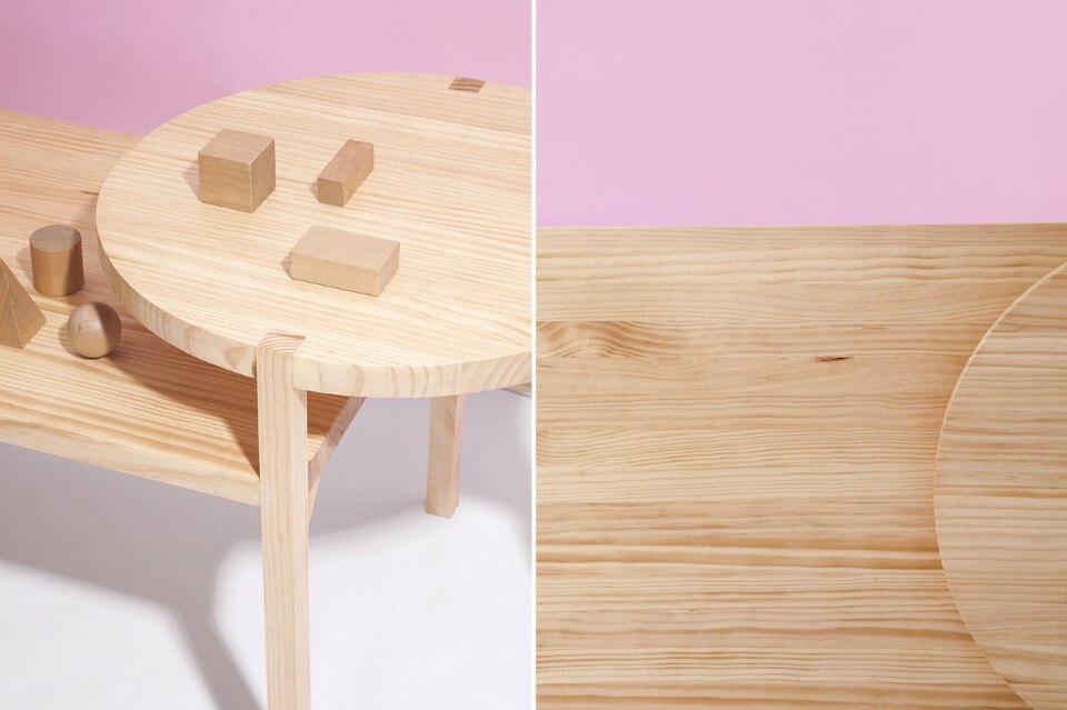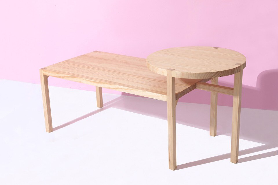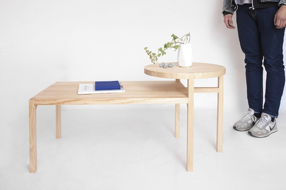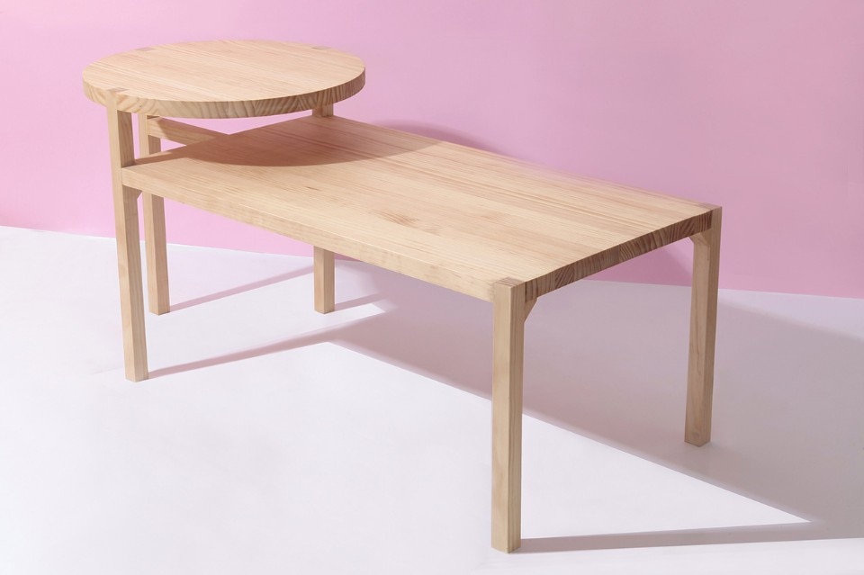 Cárcamo Segovia sceglie due forme semplici come il cerchio e il rettangolo per fare un tavolo che, composto di due livelli sovrapposti, è pensato per i piccoli spazi.