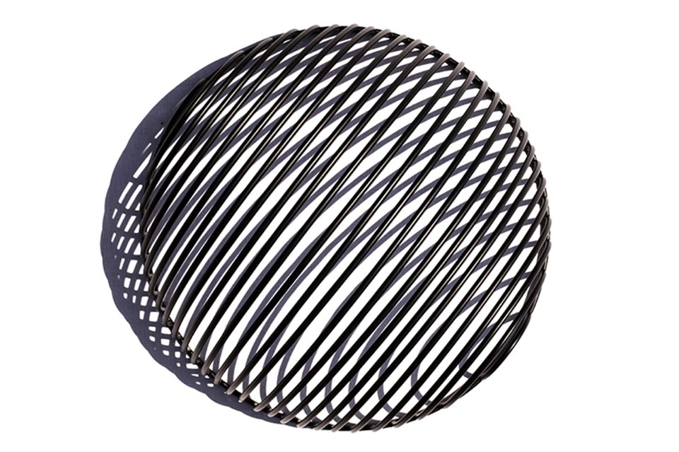 Due semisfere – una sullo sfondo e una in primo piano – si relazionano secondo tensioni e giustapposizioni. La lampada si compone di due pattern di linee con un singolo punto comune, il cavo che contiene tutto il sistema.