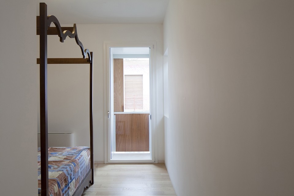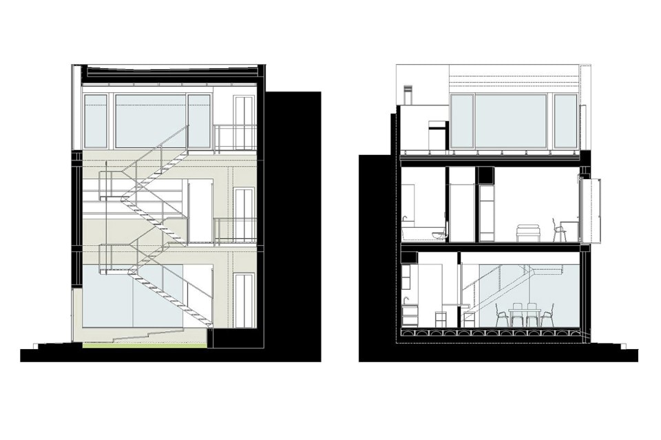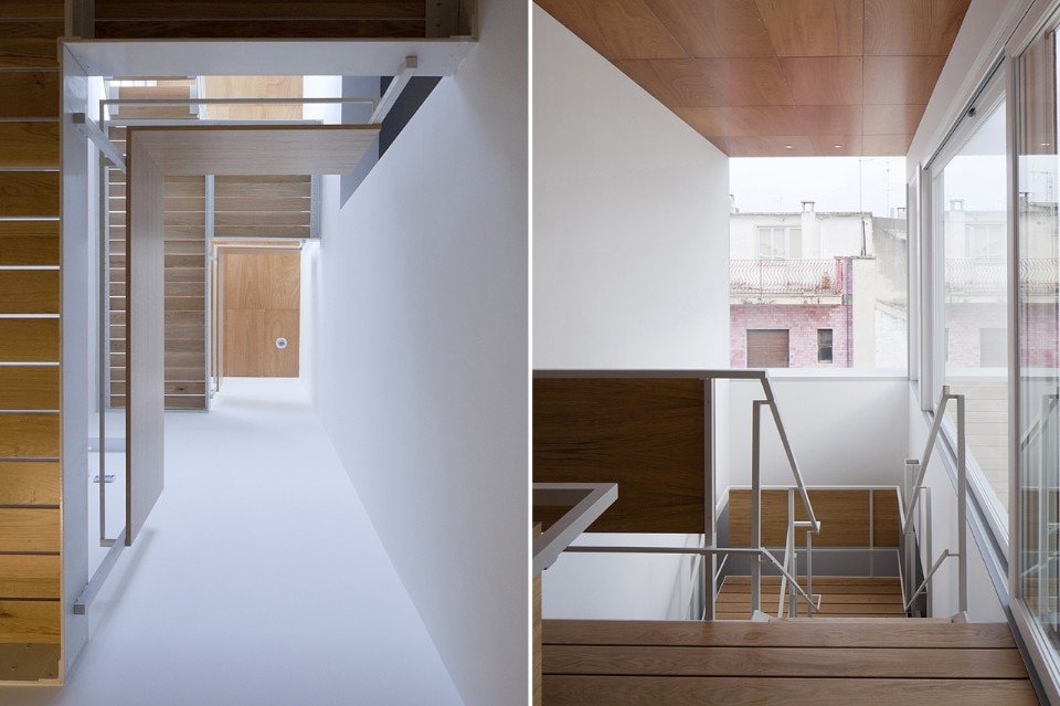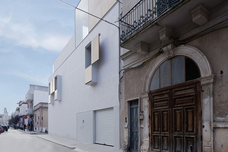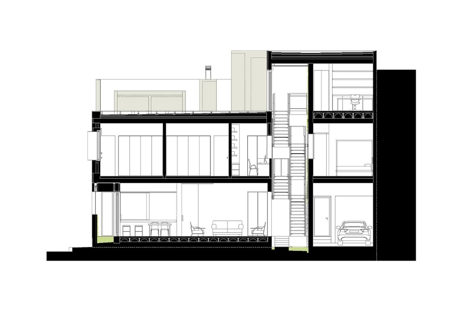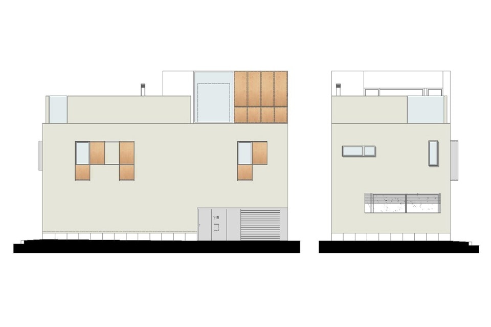 La casa prevede una zona giorno al piano terra, zona notte al primo piano e uno studio al piano superiore, dove si genera la relazione più forte con lo spazio aperto grazie alla presenza di un ampio terrazzo. Il progetto risolve il rapporto con la strada e la luce isolandosi dal piano della strada e allentando il rapporto con essa, senza perdere l’illuminazione naturale.