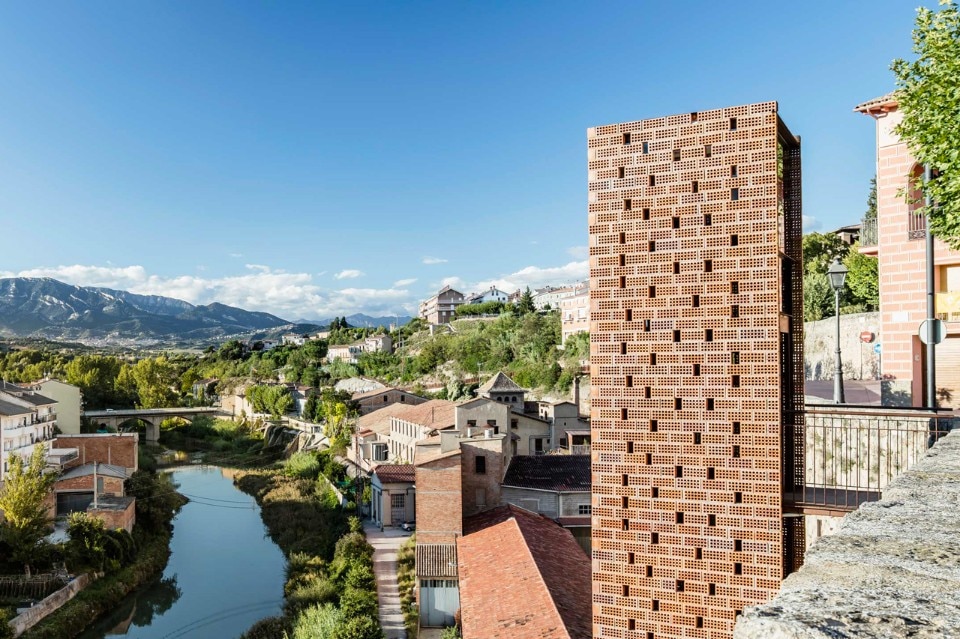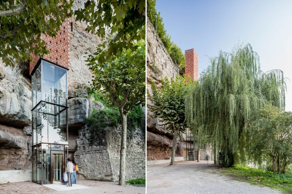 L’ascensore migliora l’accessibilità al centro storico, ma è anche un modo per recuperare l’uso di questo passaggio antico sul fiume offrendo nuova continuità urbana con lo spazio pubblico di Plaza de la Villa. L’intenzione è instaurare un dialogo con tutte queste preesistenze, migliorando la relazione con l’industria tessile e riconoscendo il verde come spazio pubblico.