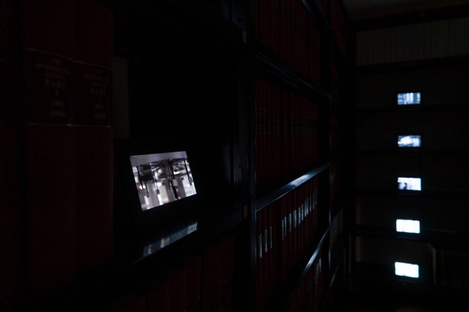 Vi è anche un altro livello per il quale Virgo è intrinsecamente legato al suono. L’interferometro infatti sonda l’universo in uno spettro di frequenze coincidente con quello dell’orecchio umano. Tale casuale corrispondenza fa sì che un approccio uditivo sia alla base delle attività dei ricercatori; in particolare viene utilizzato per individuare e risolvere i disturbi agli strumenti di Virgo. L’audio di Blind Injections, pensato per essere diffuso all’interno della biblioteca dell’Osservatorio, è una rielaborazione della banca dati dei rumori identificati dall’interferometro, provenienti dal dipartimento che si occupa della diagnostica dei disturbi. L’artista ne ha ripreso l’organizzazione in forma di indice (nome, numero e famiglia del suono) per orchestrarli in un’unica composizione quadrifonica.