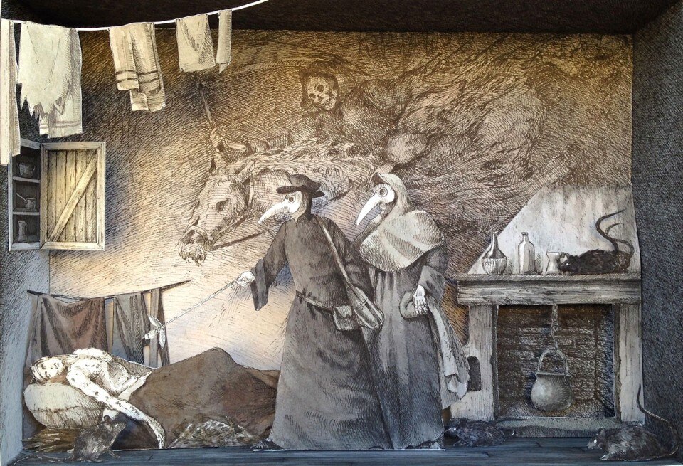 Vanni Cuoghi, Monolocale 32 (Sacrificio di Isacco), 2015. 21 x 30 cm, china e acquerelli su carta
