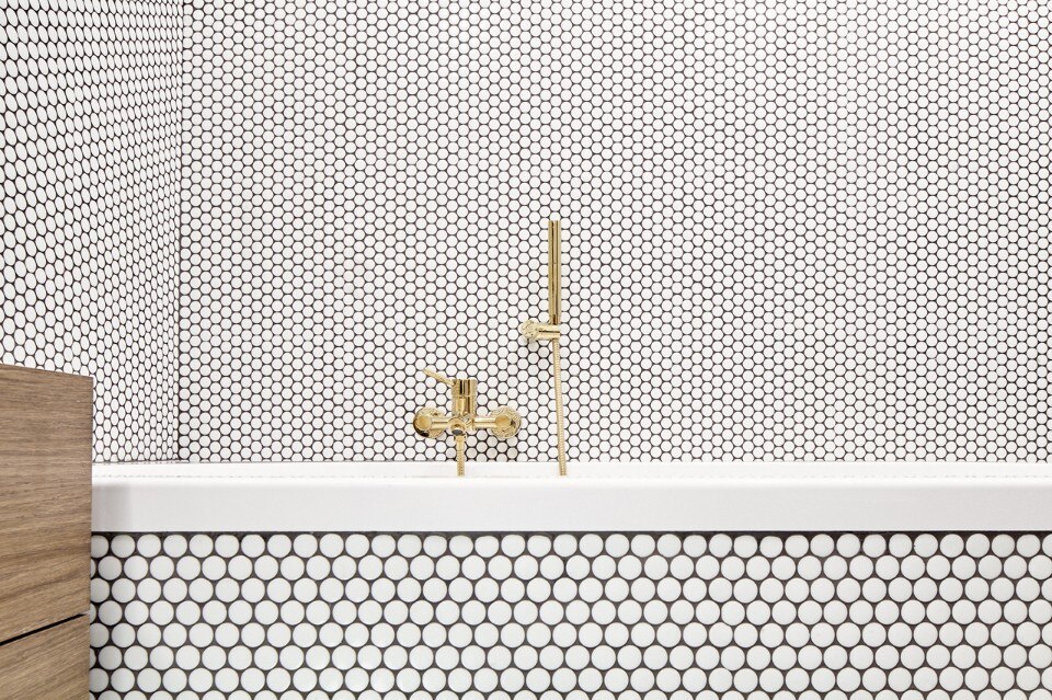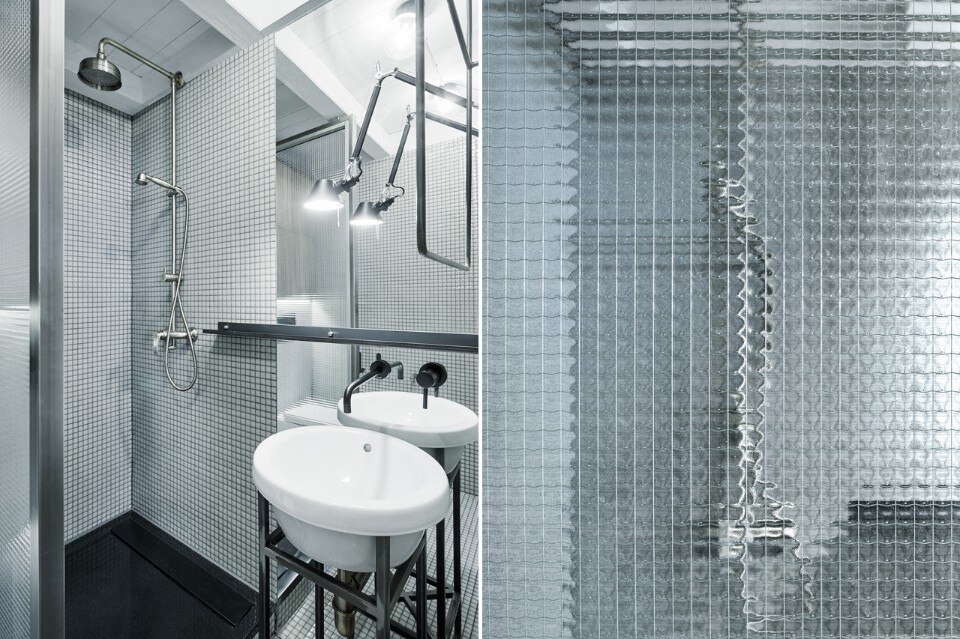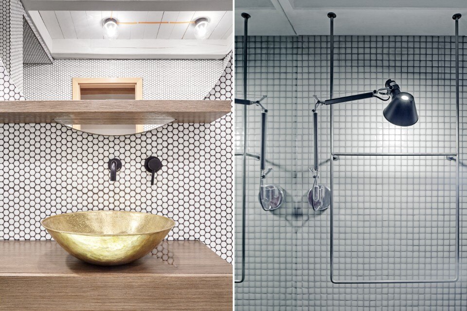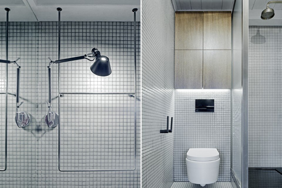 La cucina è quella in cui è più manifesto il gusto londinese, mentre il bagno bianco galleggia nel minimalismo e quello verde si avvicina a un’estetica industriale. Il piccolo bagno sembra due volte più grande grazie al rivestimento a specchio dietro il lavabo in cui si riflettono l’ottone del rubinetto vintage della doccia e il sifone del lavandino.