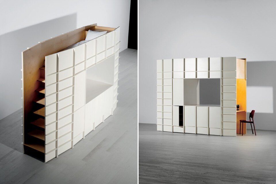 Area, Wall e Block sono attori liberi nello spazio, e come tali permettono agli utenti dare forma a nuovi modi di vivere. Belley propone un’alternativa per la configurazione degli spazi di vita, utilizzando elementi appositamente progettati che delimitano senza congelare lo spazio, svolgono diverse funzioni, introducono uno spazio-nello-spazio... In tal modo crea tipologie atipiche. “L’idea è quella di condensare la scala degli arredi per incorporare le modalità di funzionamento che si sovrappongono da una stanza a diverse sale: mettere lo spazio di vita nel mobile”, sottolinea il designer. L’habitat diventa un ambiente che si modula per adattarsi allo stile di vita degli occupanti, con una vera e propria interazione tra gli utenti e le cose che li circondano.