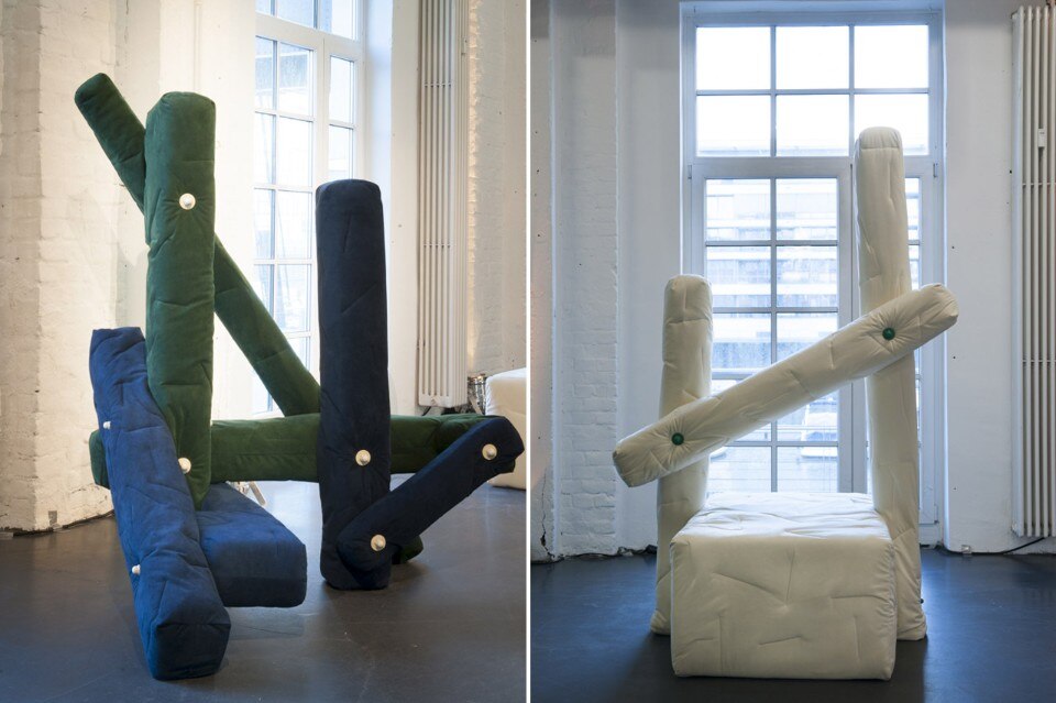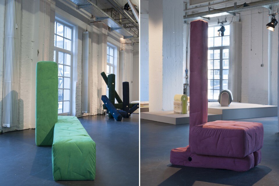 Infine l’artista cileno-svedese Anton Alvarez per l’opera New Skids on the Block gioca con la variegata palette colori di Alcantara per ideare originali complementi d’arredo. Composti da soffici bastoni che presentano una struttura in legno e alluminio rivestita in schiumato e completata da morbida Alcantara, gli elementi, di dimensione umana, sembrano “vivi”, come corpi che lottano o che si aggrappano l’uno all’altro.