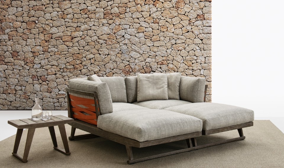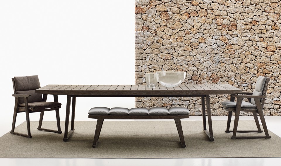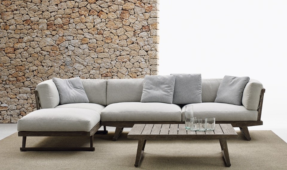 Al vivere all’aria aperta è dedicata Gio, la nuova serie dall’accento classico contemporaneo disegnata da Antonio Citterio. Una famiglia completa di divani, elementi terminali, chaise longue, lettini, poltrone, sedie, tavoli e complementi che si sviluppano a partire da strutture in massello di teak nella speciale finitura antique grey, che conferisce al legno un particolare aspetto vissuto con riflessi grigio argento.