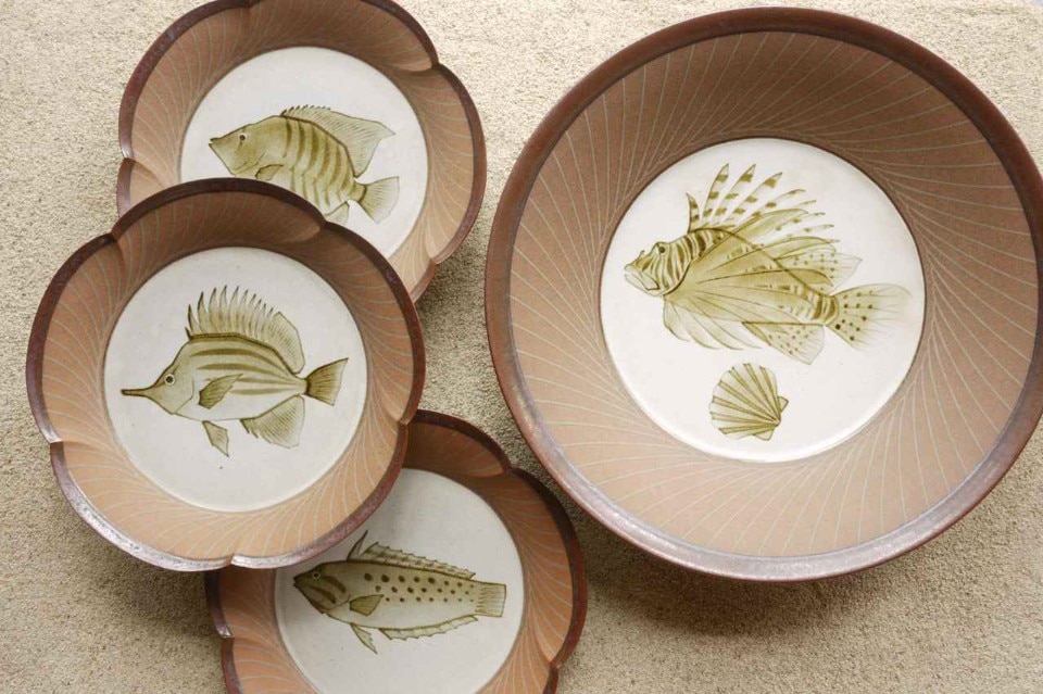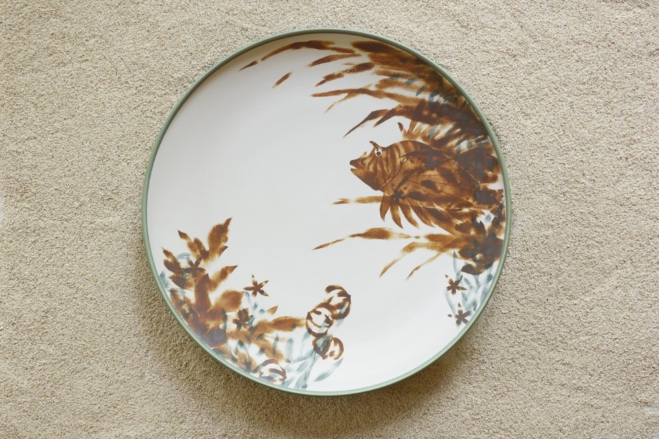 Più precisamente la tecnica utilizzata per le serie dei pesci e dei fiori è la nunozome. Applicando un tessuto non-tessuto della forma desiderata alla ceramica durante la fase di biscottatura e facendo sgocciolare un pigmento precedentemente diluito con acqua si ottiene il disegno. Caratteristica di questa tecnica sono gli effetti di trasparenza che è possibile ottenere, ripetendo l’operazione. Per la serie dei fiori a questa tecnica si aggiunge quella dello smalto, versato con un mestolo, e che richiede un ottimo controllo del gesto. A proposito del suo lavoro Koki Ohara dice che si basa su tre semplici assunti: bellezza della forma, originalità e dignità.