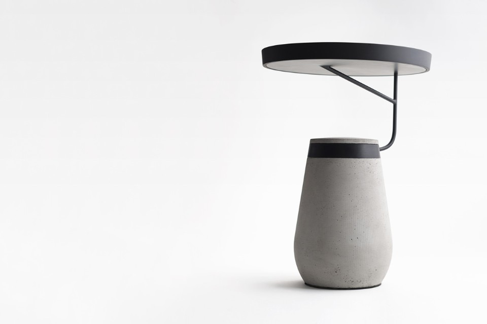 La struttura ricorda le imponenti insegne luminose che caratterizzano le vie di Kowloon: grandi neon a sbalzo su strade iper-trafficate a qualsiasi ora del giorno, ancorate ai palazzi circostanti tramite singole e apparentemente fragili barre in acciaio. L’uso del colore e la scelta di un materiale grezzo come il cemento conferiscono al prodotto un aspetto estremamente grafico, quasi bidimensionale, amplificando il linguaggio estetico dell’oggetto volutamente astratto e minimalista. L’asimmetria e il contrasto tra i volumi creano l’illusione di un corpo sospeso, quasi fluttuante, comunicando un senso di leggerezza e fragilità che contrasta con il corpo in cemento.