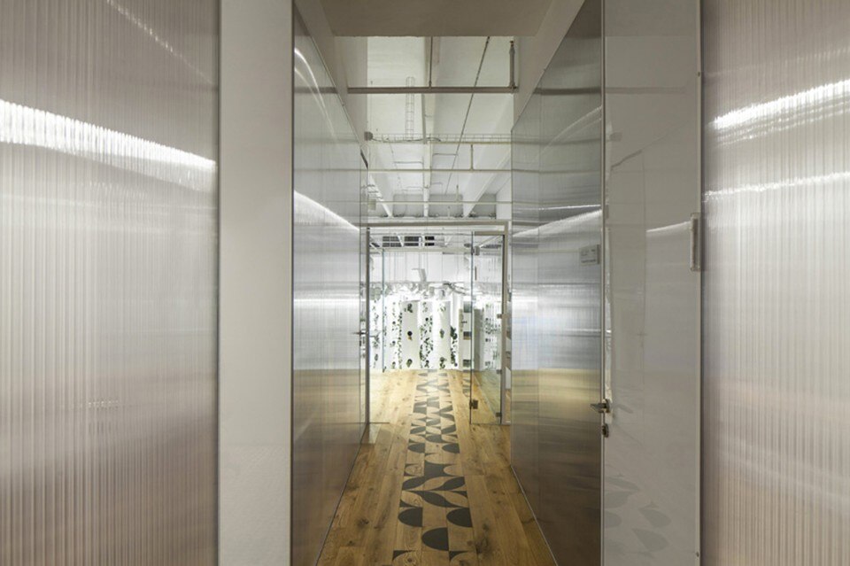 Questo semplice dispositivo di cilindri, grazie alla crescita delle piante, immerge il cliente in un percorso verde; un bosco coperto, dove l’osservatore scopre, come parte di un’esperienza, diversi marchi in nicchie nascoste. Al primo piano si trovano gli studi di architetti e designer. Gli studi di product design e di architettura si integrano a vicenda professionalmente ed economicamente.