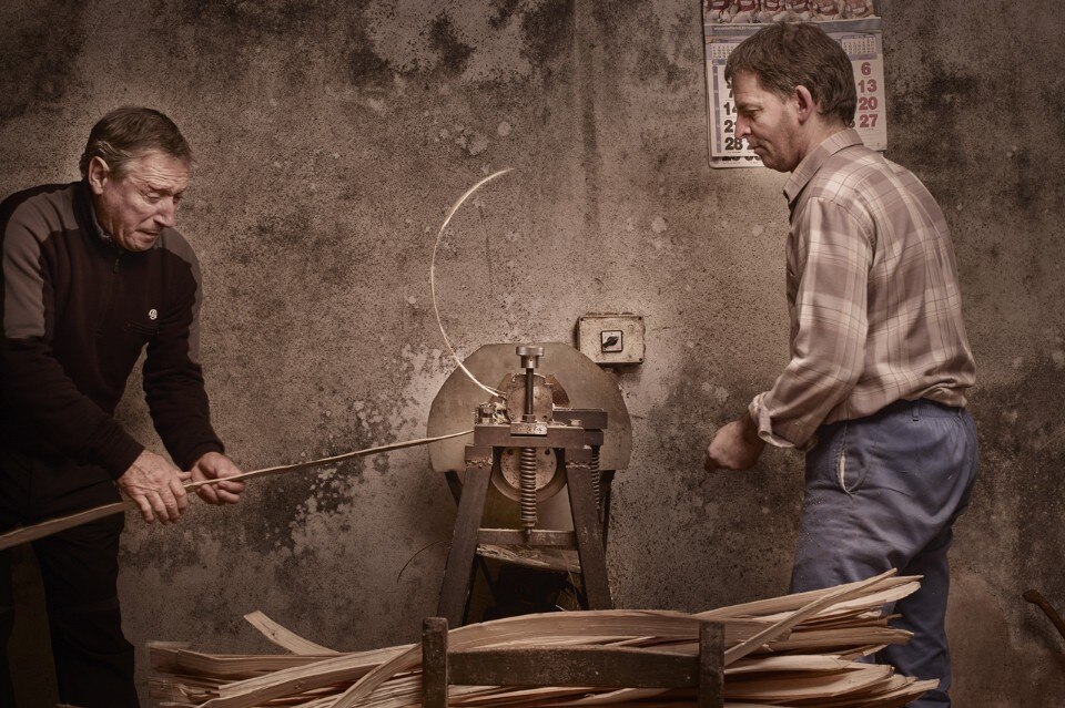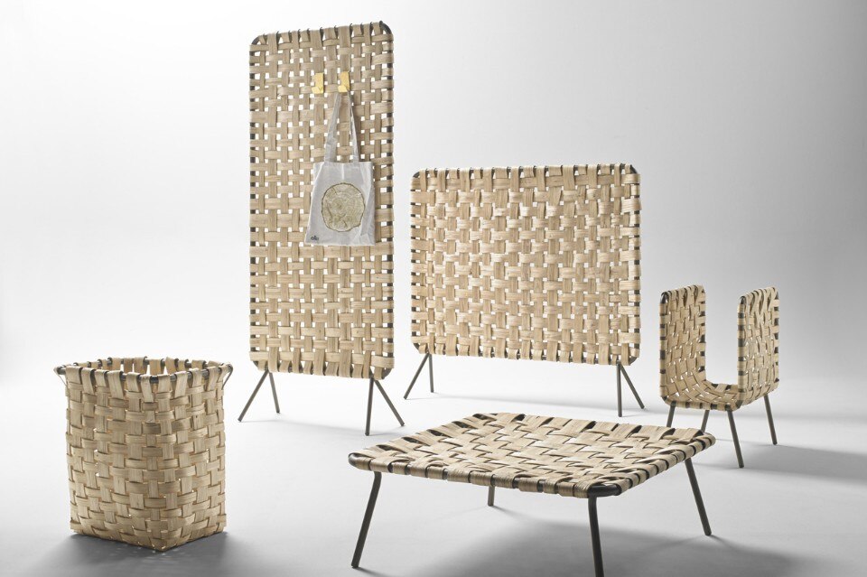 Partendo da questo strumento rurale che racchiude il mondo dei mestieri antichi, Iratzoki & Lizaso hanno sviluppato una collezione di oggetti per la casa e il contract. Realizzata parzialmente da artigiani locali, la collezione celebra chiaramente il patrimonio culturale, trovando nuovi usi per questa tecnica di tessitura delle strisce di legno di castagno (dette zumitzak in lingua basca) intrecciandole su una struttura tubolare metallica.