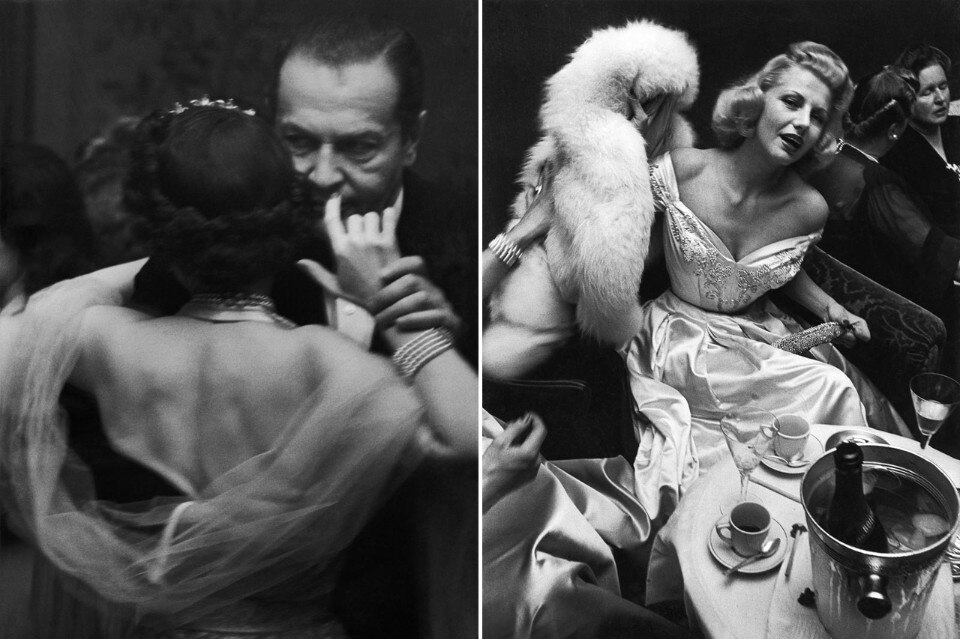 Tuggener, affascinato dall’atmosfera spumeggiante delle feste dell’alta società, aveva iniziato a fotografare a Berlino le dame eleganti e i loro abiti di seta, ma è a Zurigo e a St Moritz che con la sua Leica, indossando lo smoking, ha colto le misteriose sfaccettature delle Nuits de bal. Riprendeva con il suo obiettivo anche “il lavoro invisibile” dei musicisti, dei camerieri, dei cuochi, dei valletti, dei maître, che attraversavano silenti il mondo festoso e autoreferenziale degli incuranti ospiti. Questi ultimi osteggiarono la pubblicazione del materiale, in quanto preferivano rimanere anonimi.