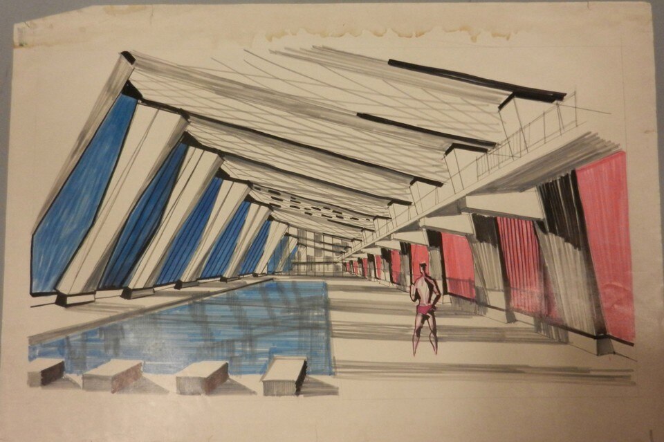 Ma sono gli anni del secondo dopoguerra – quelli affrontati nella sezione Campione del cemento (1950/60) – che sanciscono il successo di Nervi con una serie di opere in cui l’invenzione formale è strettamente connessa alla capacità costruttiva; tra queste lo stabilimento balneare Kursaal al Lido di Ostia (1950) simbolo della rinascita degli anni Sessanta con il suo iconico trampolino, e le opere realizzate per le Olimpiadi di Roma del 1960: il Palazzo dello Sport, il Palazzetto dello Sport e lo Stadio Flaminio.