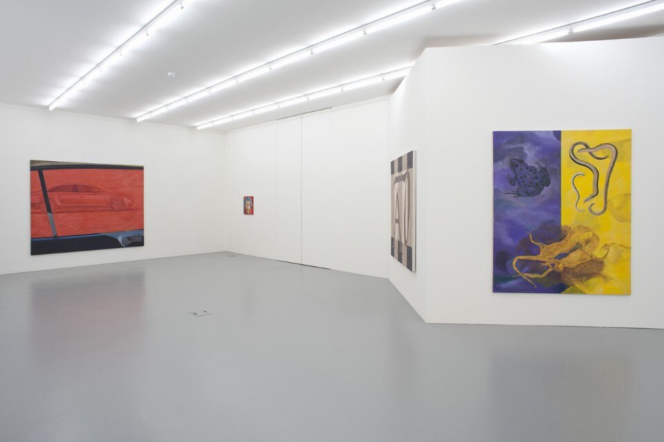 AKA – altrimenti detto – introduce pseudonimi, alias, soprannomi, così come le iniziali dell’artista. Le associazioni linguistiche hanno un ruolo fondamentale nella pittura di Allison Katz che esplora il gap tra parola e immagine, divertendosi a contraddire le convenzioni che regolano i rapporti tra i diversi linguaggi. Nei lavori di Allison Katz l’identificazione di un’immagine e quindi l’attribuzione ad essa di un nome, non è mai un processo univoco o scontato, ma si apre di continuo a infinite possibilità. La pittura di Katz reiventa continuamente se stessa, attingendo ad un immaginario poliedrico che include figurazione eclettica, realismo magico, astrazione geometrica.