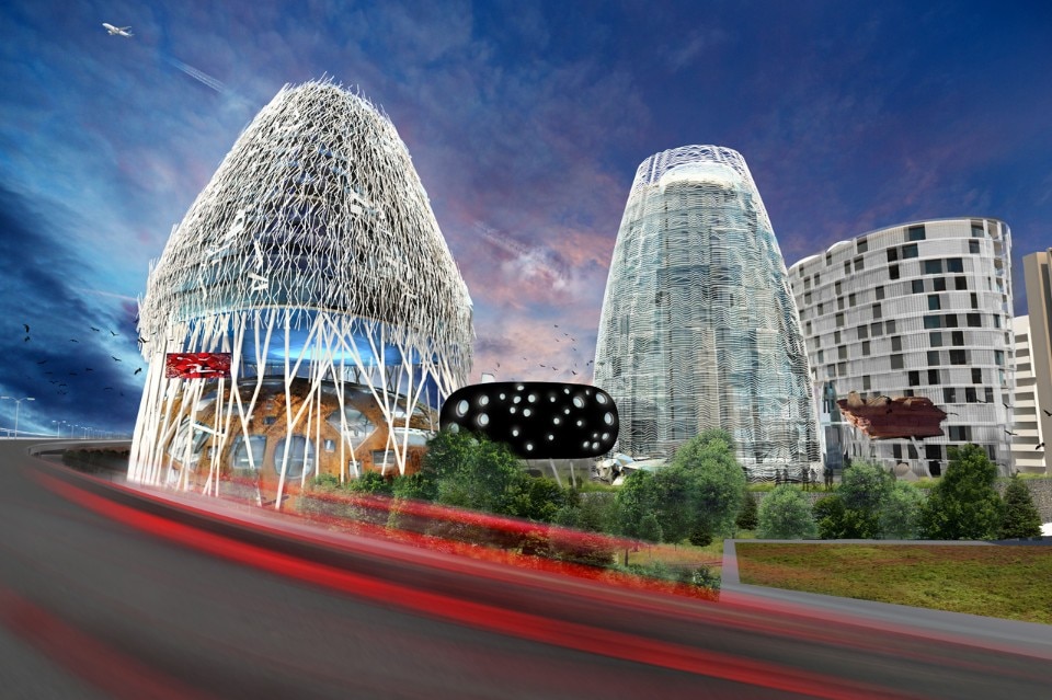 In apertura: Will Alsop, Blue in the night, red. Sopra: Will Alsop, aLL Desig, Homework