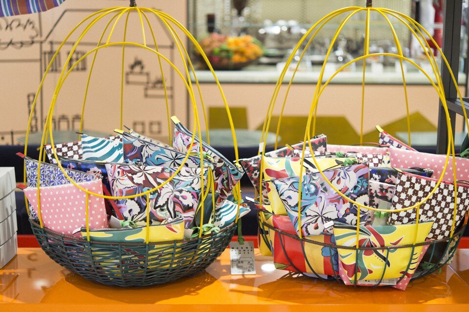 L’inaugurazione vede protagonista un pic-nic primaverile, interpretato con lunch box in legno, variopinti furoshiki, termos, borse floreali, portavasi in PVC e set di porcellane decorate con i disegni dell’archivio Marni.