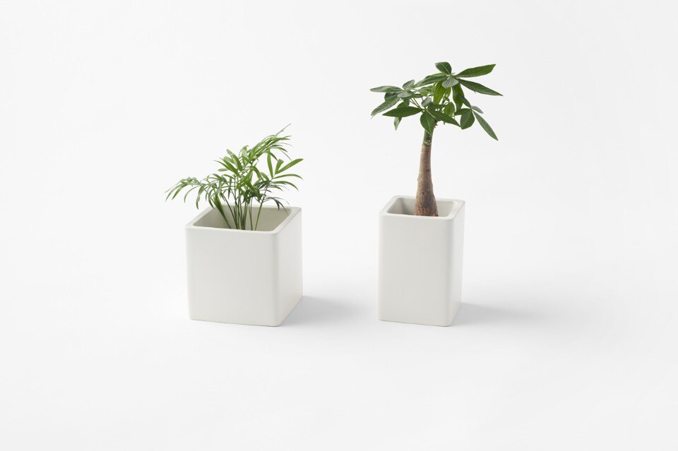 Nendo, cubic pet goods, by | n. Una ciotola di forma quadrata con linee di contorno in rilievo all'interno. Le linee possono essere utilizzate per controllare facilmente la quantità di cibo o acqua. La ciotola è proposta in tre dimensioni, in base alla taglia del cane. Di solito, le ciotole per il cibo degli animali domestici non si integrano bene con l'ambiente circostante. Queste sono proposte in abbinamento a dei portavasi di forma simile, per migliorare l'armonia dell'ambiente