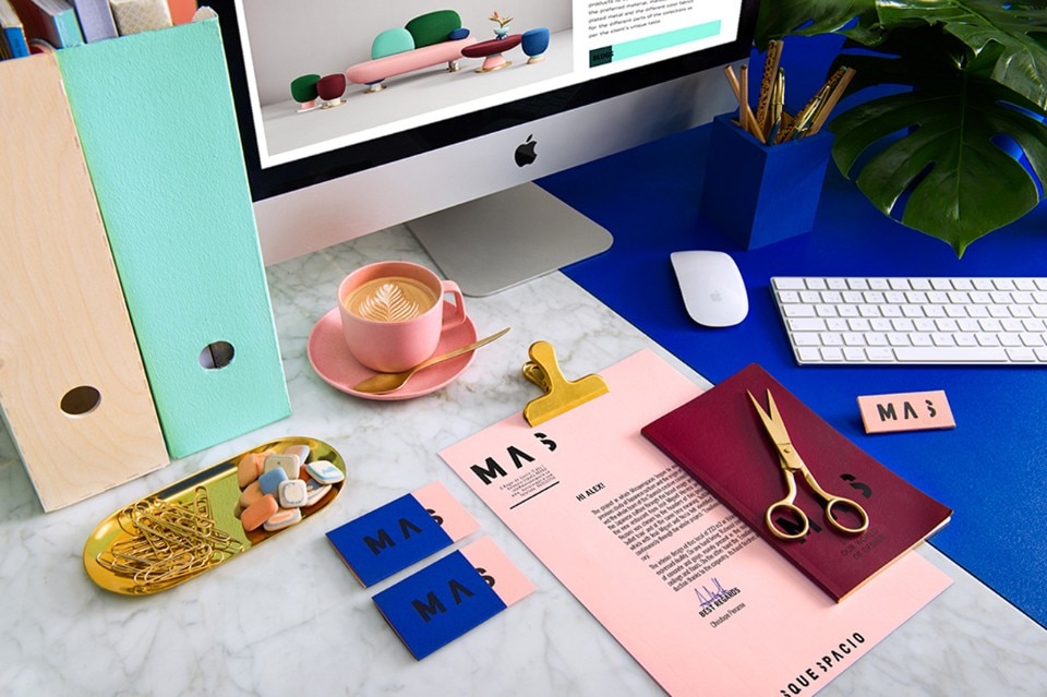 Il progetto del nuovo studio di Masquespacio inizia con la riprogettazione dell’immagine coordinata, composta dal logo e dalla parola mas (“più” in italiano).
