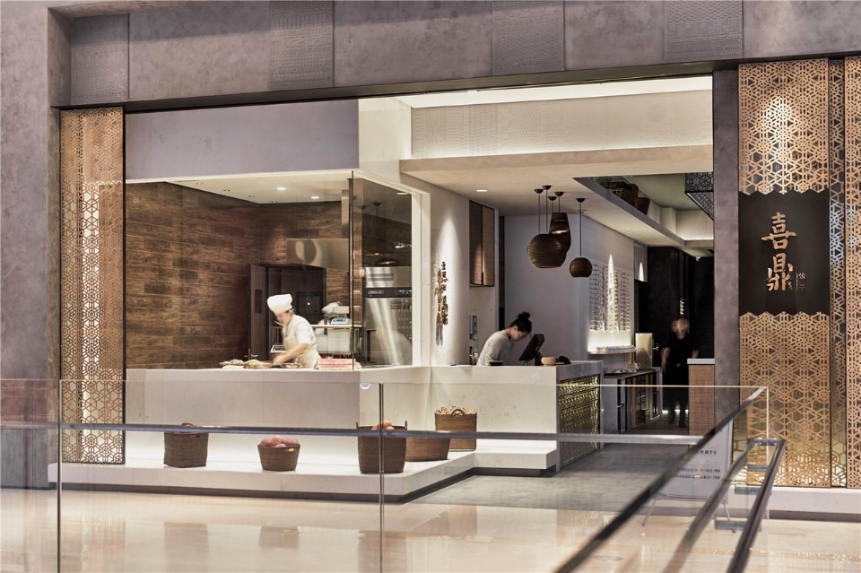 Il concetto di “comfort” guida il layout generale del ristorante: il progetto illuminotecnico crea una sensazione spaziale accogliente e intima, con spot illuminati che ben si prestano a piccole riunioni. Per sottolineare il prodotto di punta di Xi Ding, una sorta di pasta ripiena di frutti di mare, RIGI prevede una zona disegnata con soggetti marini, il cui l’illuminazione a LED disegna un’onda blu.