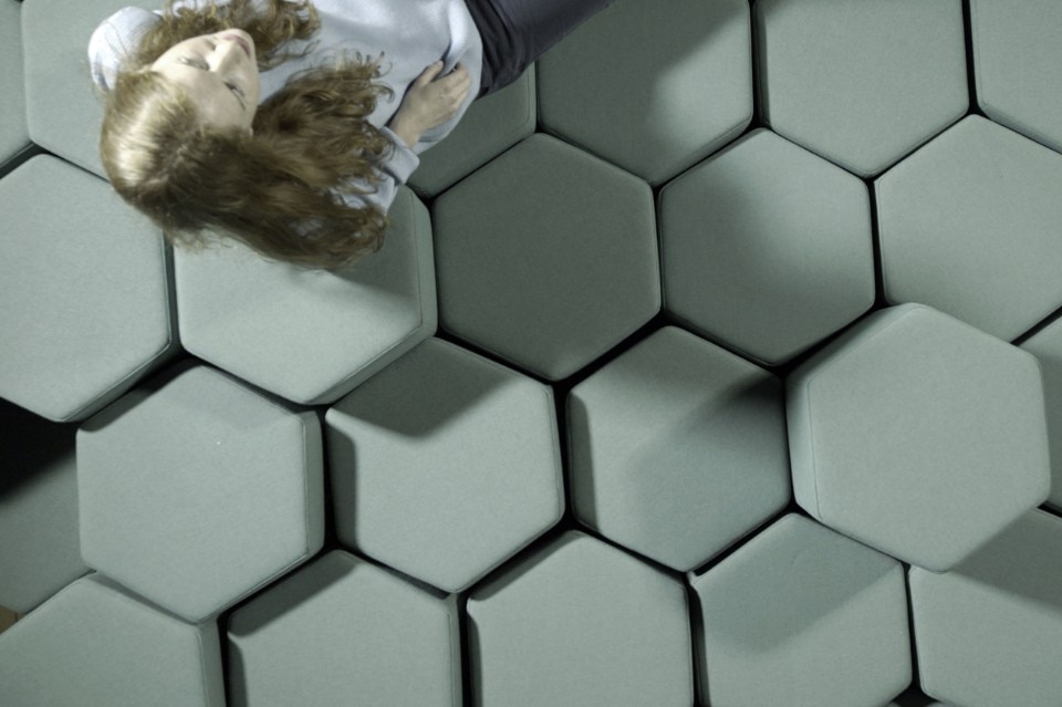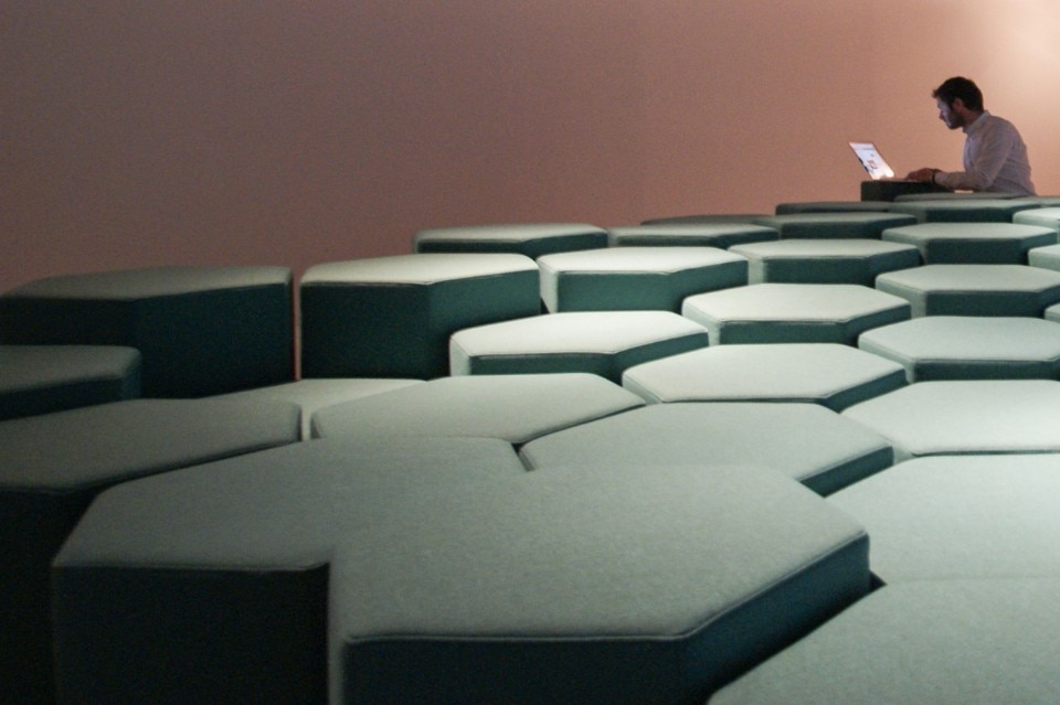 Il sistema si compone di una serie di sgabelli esagonali imbottiti, i quali incorporano un attuatore lineare che permette loro di sollevarsi e abbassarsi. L'altezza di ogni singolo elemento può raddoppiare o dimezzarsi in pochi secondi.