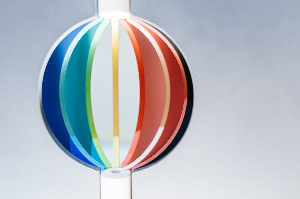 Al momento servono circa quattro ore per realizzare un pezzo, ma una volta messo a punto stampo e processo – sostengono i Nito – i tempi si potranno accorciare. Bobina può comunque avere anche un futuro più seriale, sostituendo il filato di cotone con un materiale plastico di nuova generazione. Allo stand i due designer hanno presentato anche una lampada, anch’essa dall’estetica forte e molto maneggevole. Tint è composta da una serie di elementi mobili che si agganciano a un perno centrale provvisto di un vano per alloggiare il bulbo. Muovendoli si può variare la dominante cromatica e creare giochi di luci e ombre; la fonte luminosa si può spostare in cima alla lampada, per cambiarne fisionomia e portato luminoso.